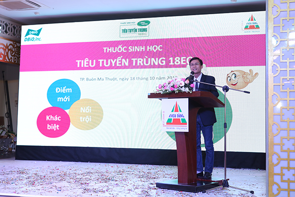 Ông Nguyễn Trọng Thăng – Đại diện văn phòng Tập đoàn DBiO Hàn Quốc tại Việt Nam giới thiệu sản phẩm Tiêu Tuyến Trùng 18EC