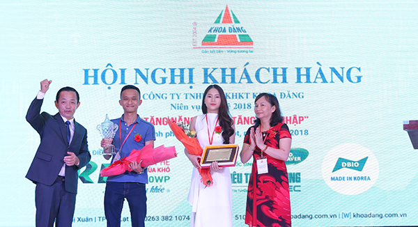 Ngoài chia sẻ những giải pháp hỗ trợ tăng năng suất – tăng thu nhập, HNKH niên vụ 2018 – 2019 cũng là cơ hội để công ty Khoa Đăng tri ân đến khách hàng trong suốt gần 15 năm qua, vinh danh những khách hàng đạt doanh số cao trong niên vụ 2017 – 2018, đồng thời gặp gỡ, giao lưu nhằm thắt chặt hơn mối quan hệ hợp tác cùng hướng tới mục tiêu chung, bên cạnh việc hỗ trợ BCND đạt năng suất cao, tăng thu nhập, xây dựng nền nông nghiệp bền vững và tăng vị thế hàng nông sản của Việt Nam trên thị trường thế giới với những tiêu chuẩn nghiêm ngặt khắt khe và cạnh tranh khốc liệt.