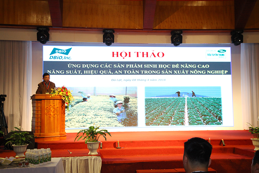 Được sự cho phép của chi cục BVTV và Sở Ngoại vụ tỉnh Lâm Đồng, ngày 8.4.2018 vừa qua tại khách sạn Monet Garden Villa (số 03, Nguyễn Du, Đà Lạt), công ty TNHH DV KHKT Khoa Đăng phối hợp với Đại học Quốc gia Chung Nam (tập đoàn DBiO Hàn Quốc) tổ chức hội thảo với chủ đề “Ứng dụng các sản phẩm sinh học nhằm nâng cao năng suất, hiệu quả và an toàn trong canh tác nông nghiệp”