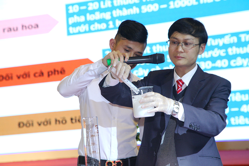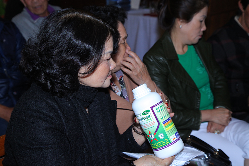 - Khách tham dự trực tiếp cảm nhận mùi và màu sắc của sản phẩm Tiêu Tuyến Trùng 18EC