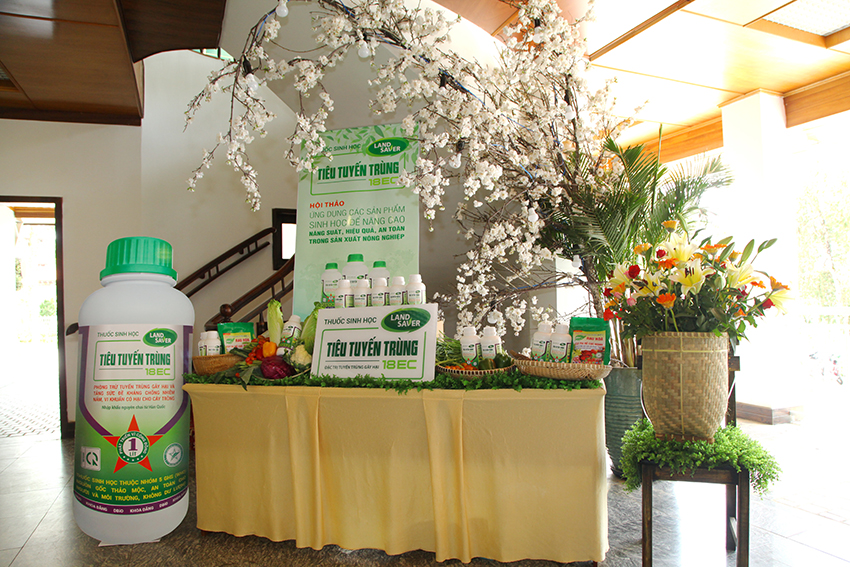 Sản phẩm đầu tiên được giới thiệu tại hội thảo là Thuốc Tiêu Tuyến Trùng 18EC – Thuốc BVTV có nguồn gốc thảo mộc và được nhập khẩu nguyên chai từ Hàn Quốc. Tiêu Tuyến Trùng 18EC được các giáo sư trường Đại học Quốc gia Chung Nam – Hàn Quốc nghiên cứu, được sản xuất và phát triển bởi tập đoàn DBiO Hàn Quốc. Sau 10 năm thành công tại thị trường Hàn Quốc trong lĩnh vực vực phòng và trị tuyến trùng, sản phẩm Tiêu Tuyến Trùng 18EC được giới thiệu đến Bà con Nông dân tại Việt Nam với hy vọng giúp đỡ Bà con trong canh tác nhằm mang lại năng suất và hiệu quả cao hơn.